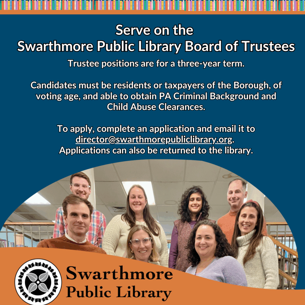 Any support you can provide is greatly appreciated! If you have any questions or would like more information, please contact us at director@swarthmorepubliclibrary.org or call 610-543-0436.